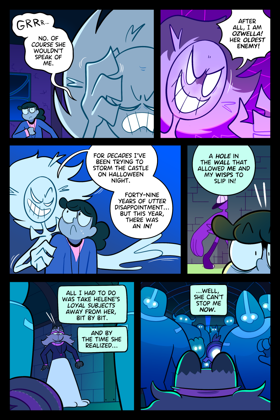 Ozwella taking the ghosts from Helene's control slowly is a reference to the "Frog in Boiling Water" analogy you're probably familiar with if you've ever seen An Inconvenient Truth. The frog doesn't notice the water is slowly heating up, just as Helene didn't notice when her power was getting bled one ghost at a time.