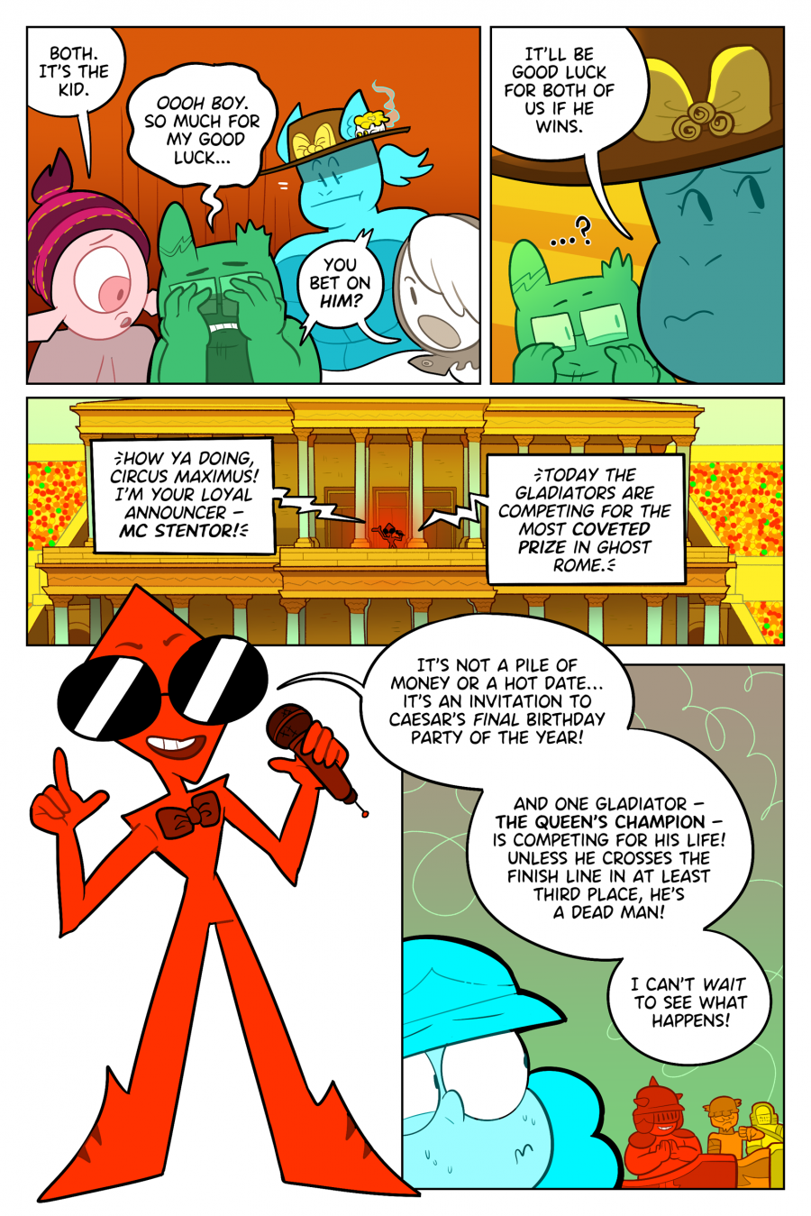 Hey time to meet the shouty guy! This is MC Stentor! He's our announcer for the Exhibition. And he's really excited to watch Cyrus die. Yeah. Today is a highlight for him.