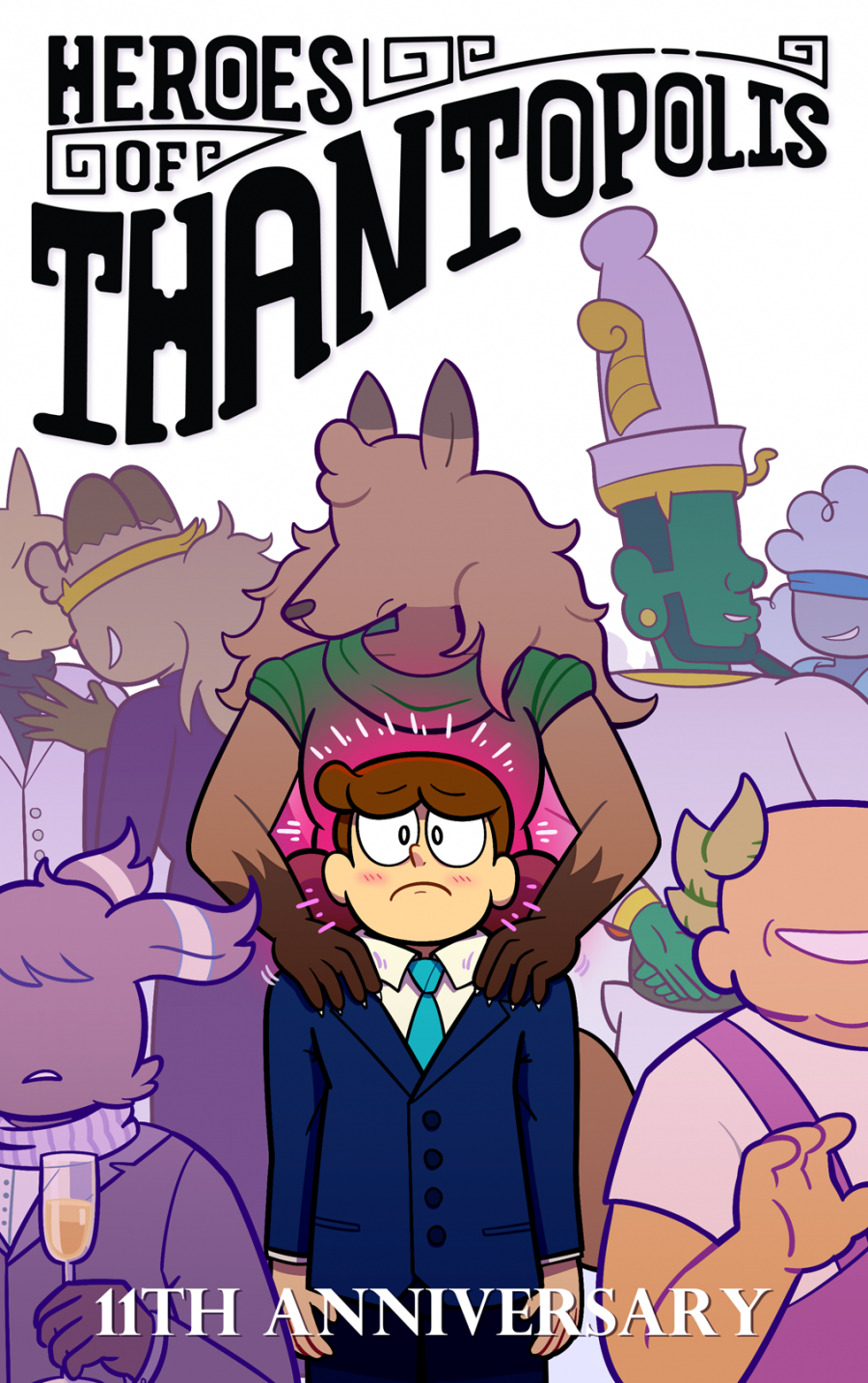 Today is Heroes of Thantopolis 11th anniversary! Breaking from the trend of color-based illustrations (10 and 11 are basically the same color to me, go figure), I wanted to evoke the idea that Cyrus is at the center of many character's machinations, whether they be allies, enemies or somewhere in between. At least his (newly revealed) mom will protect him... right?