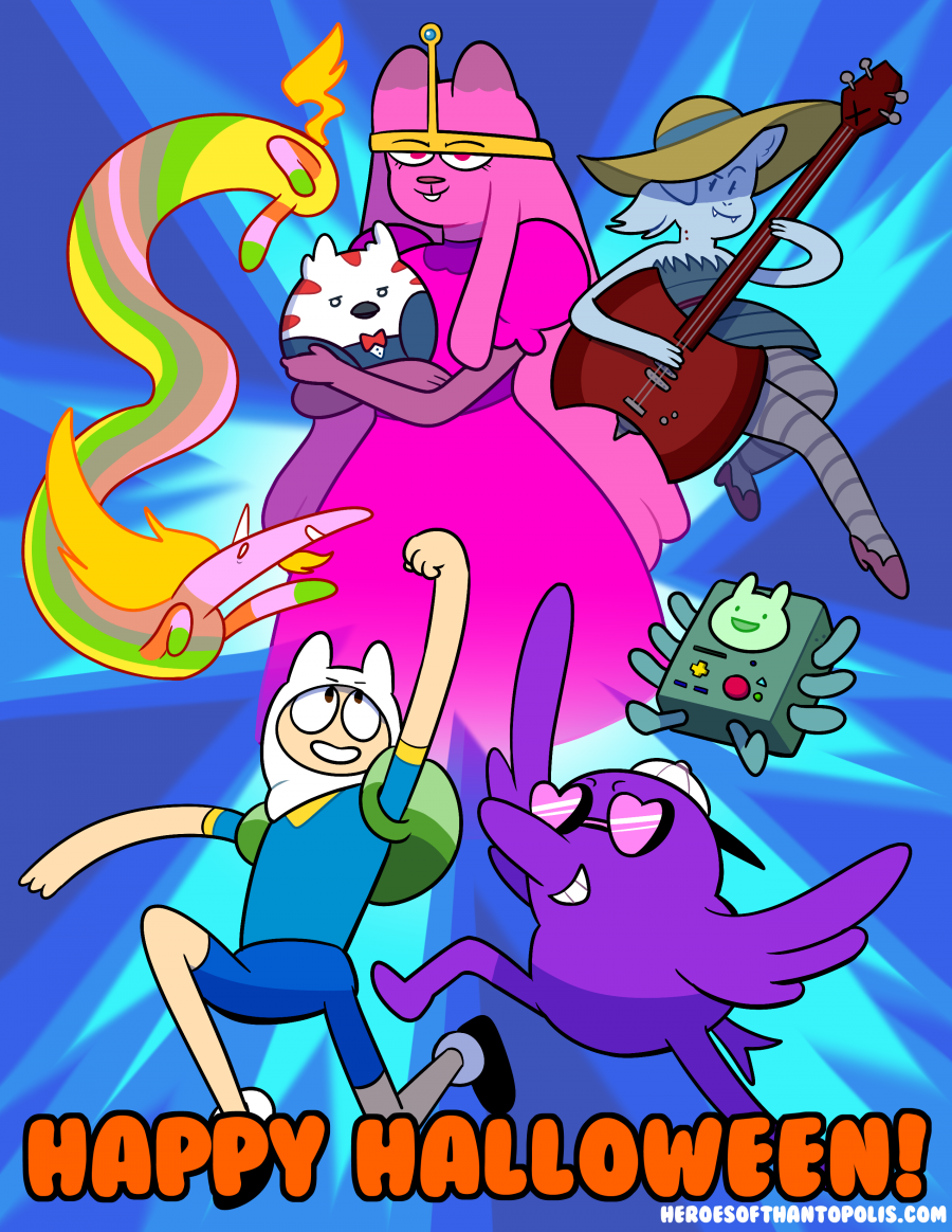 It's Halloween Time! As tradition with Heroes of Thantopolis, I wanted to dress the characters up as a huge source of inspiration for both the comic and myself - Adventure Time! While I often talk about how shoes inspired the comic, my thoughts leading up to its inception were mostly about Adventure Time, then in either the second or third season. I knew there was a backstory to all the wackiness of the Land of Ooo and bemoaned that it got little focus. I wanted a show with more worldbuilding in it, so I created one! Now that Adventure Time has ended, and Redburn has joined the cast, it felt like the perfect time to do a Halloween homage.