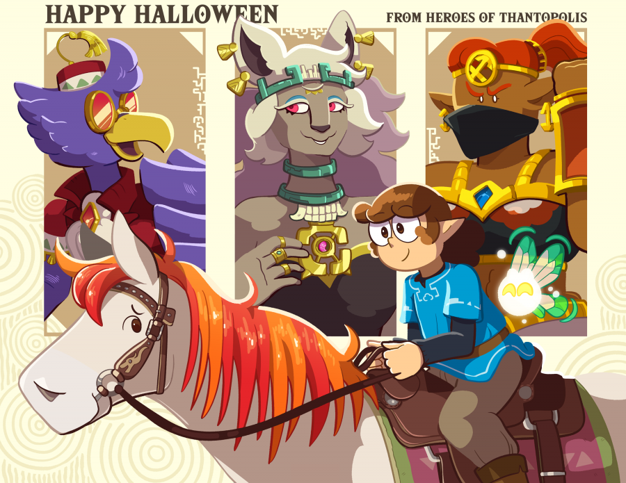 Tears of the Kingdom was my first-ever Zelda game, and I really enjoyed it! (A friend accidentally bought two copies and gave me one as a gift.) For this year's Halloween, I transported the gang to the world of Hyrule - Less costumes, and more AU.