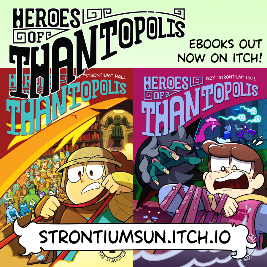 Heroes of Thantopolis is a passion project. I don't make money off ads, I don't have a Patreon, and since leaving Hiveworks, I'm now footing the bill for hosting. If you're a regular reader of the comic, and have the means to do so, purchasing an eBook would majorly support my work.