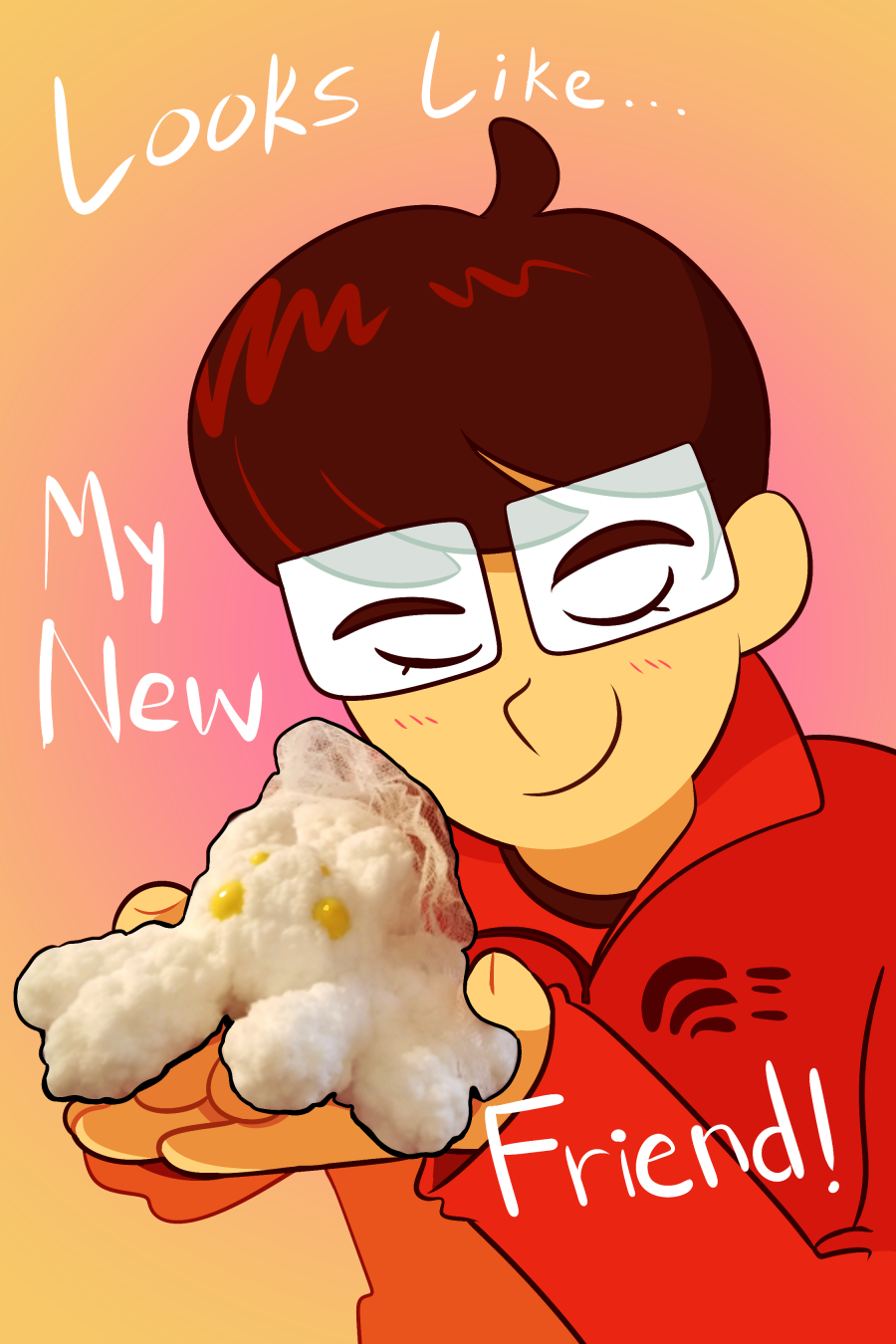 I also get to reference an old fan drawing of Xisea done way back in 2014 (wow!) with the text. Ever since Xisea squished a bee in that image, I've liked to have her say "Looks like my new friend!" Now Xisea is MY new friend!