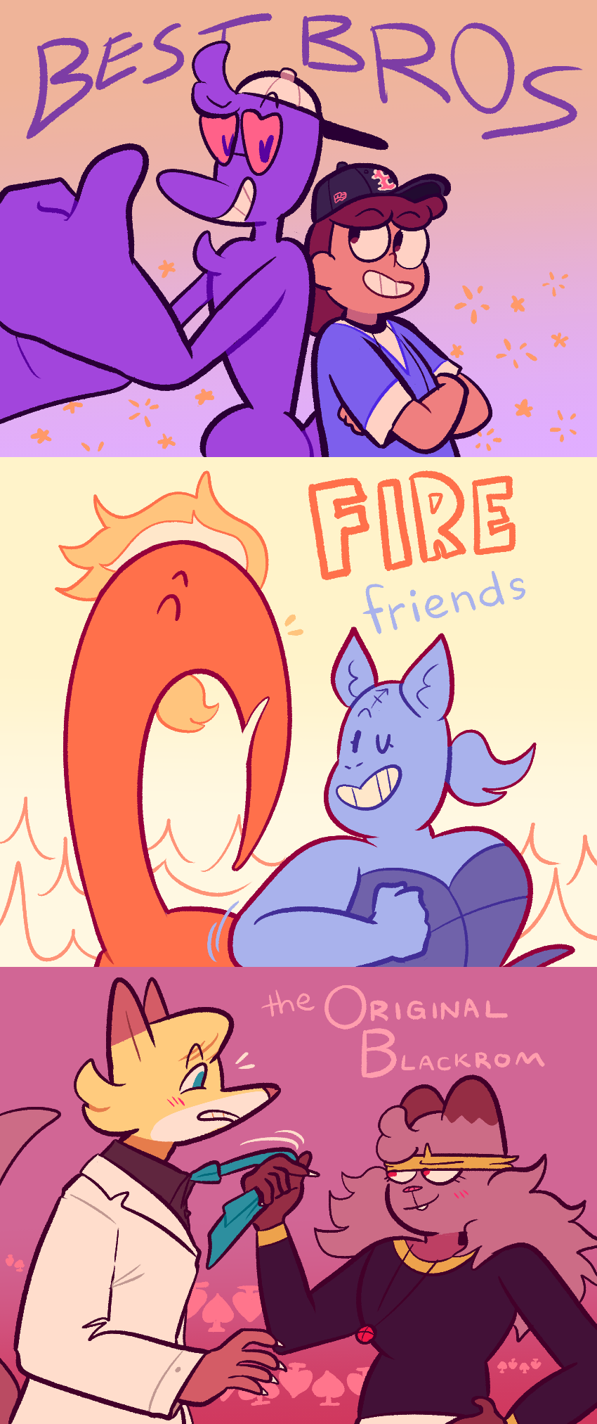 Hiatus art! Here are some drawings I did for Valentine's Day this year (and February's Hivetheme). We got two nice drawings of friends and one nice drawing of... whatever Helene and Isaac have going on XD